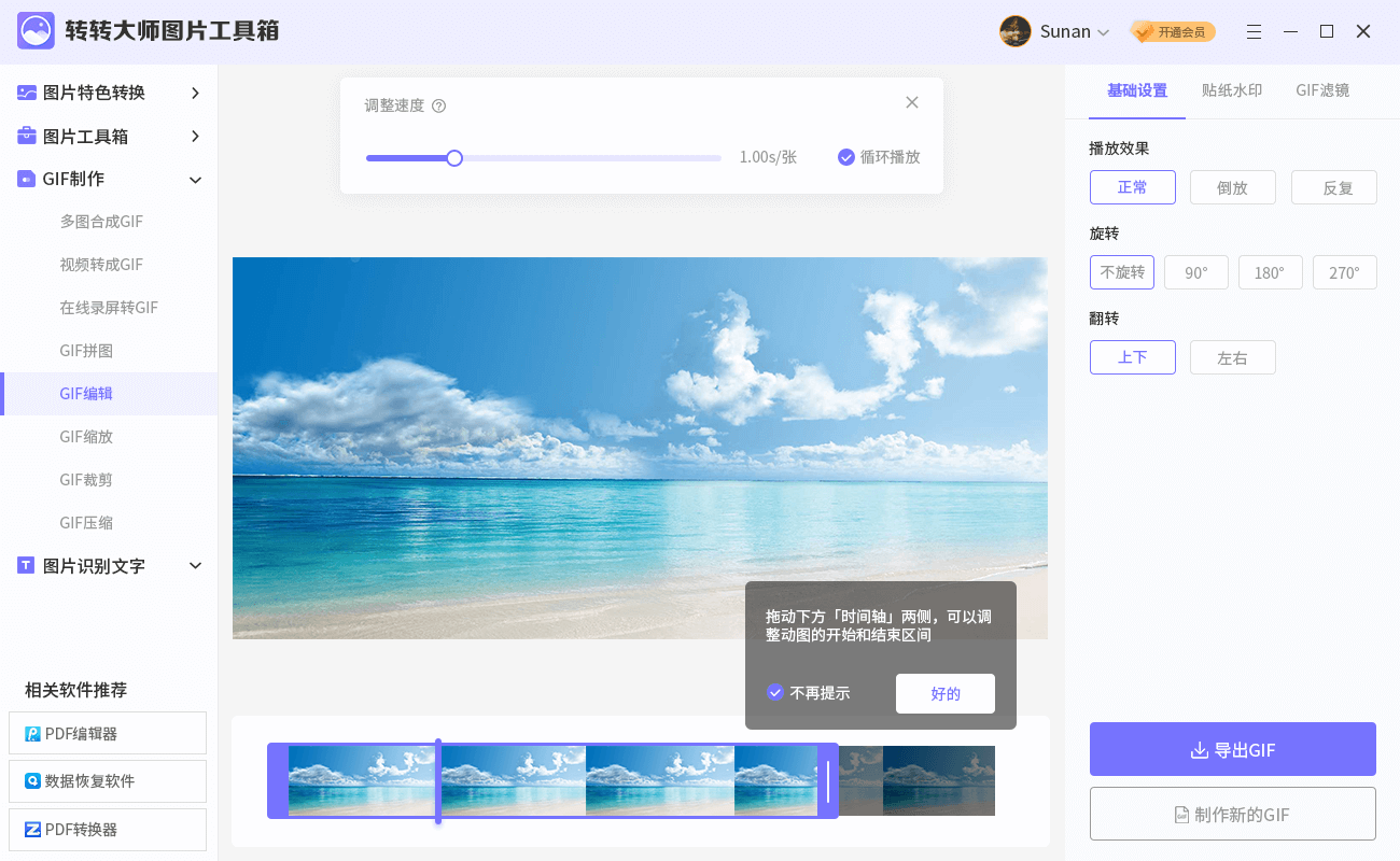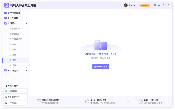 支持GIF帧数编辑,GIF裁剪、GIF压缩,添加文字、水印等