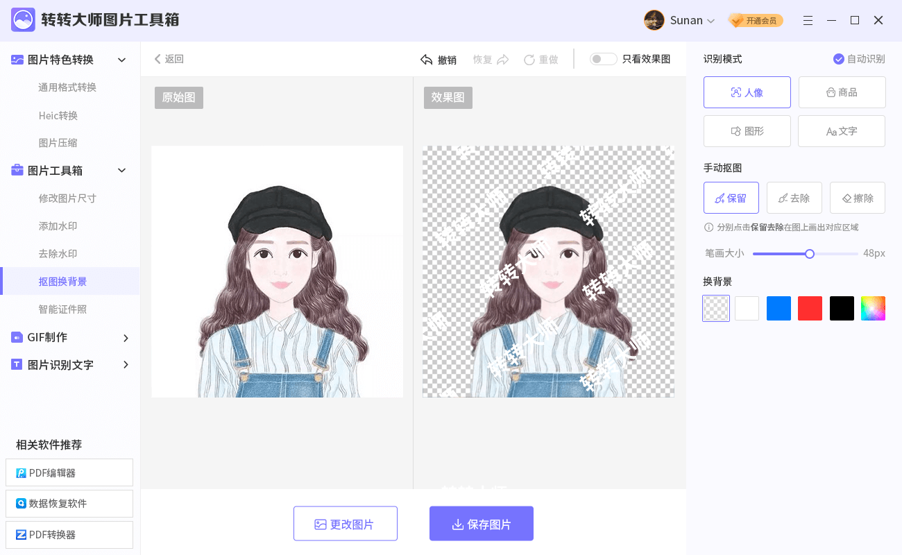 智能AI助力抠图,抠图清晰无毛边,多种模板任意更换,无需PS技术;