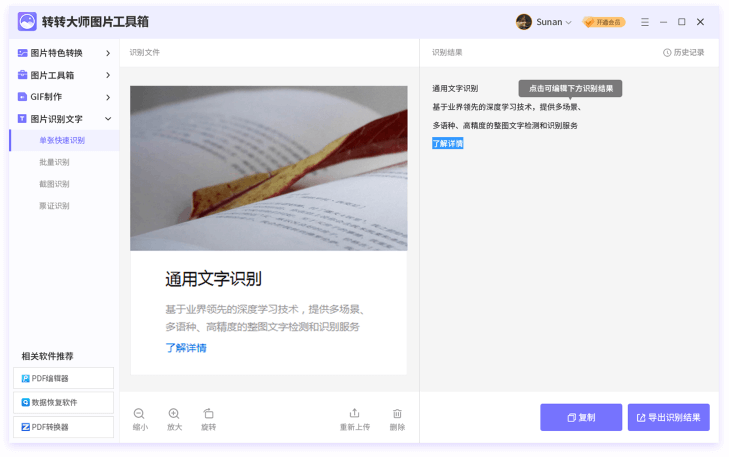 这软件操作挺简单的,上传图片文字很快就能识别出来,不懂的问题还有24小时客服耐心帮我解答,挺贴心的!