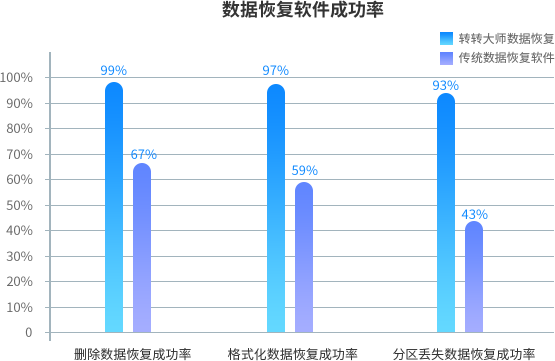 无论对电脑误删文件,格式化文件,还是磁盘分区丢失,系统奔溃等原因导致的数据丢失,转转大师数据恢复软件均保存较高的数据恢复成功率